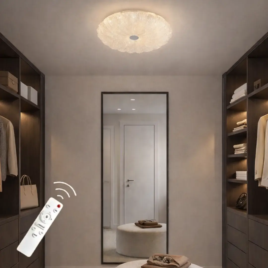 Zarif Cristalya Serisi 33'Lük Yuvarlak Uzaktan Kumandalı Dimmerli 3 Renk Ledli Plafonyer Ledli Avize Çap 33 cm
